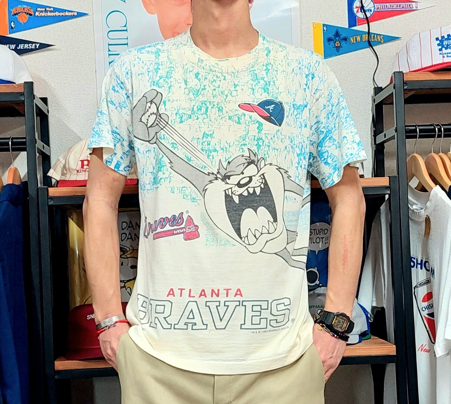 90's USA製 ATLANTA BRAVES×LOONEY TUNES Tasmanian Devil リンクプリントTシャツ